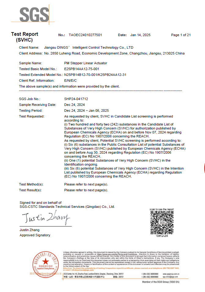 REACH - Annex XVII (PAHs & Organotin) - Stepper Linear Actuator Series