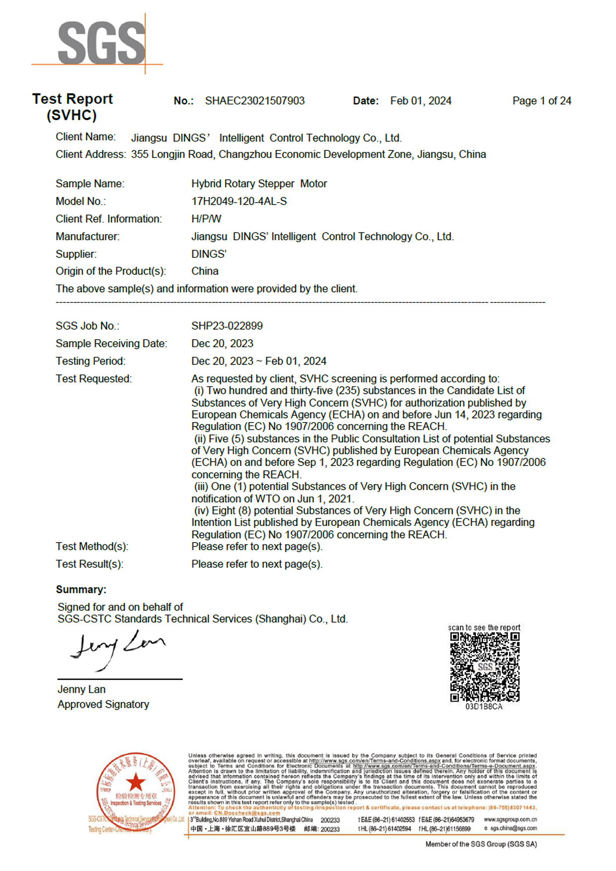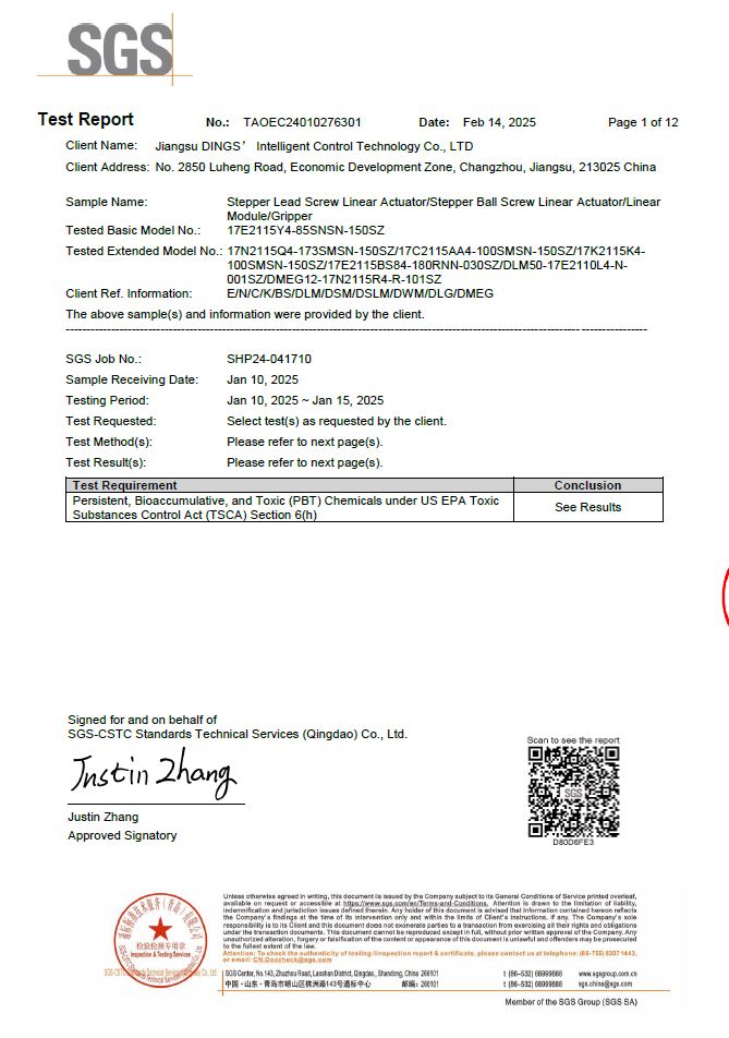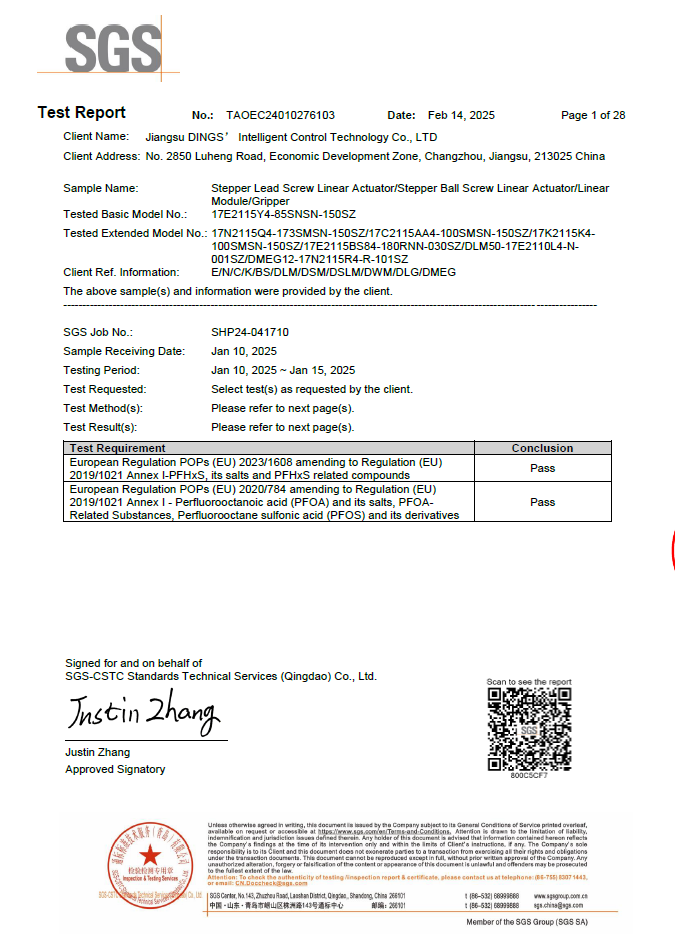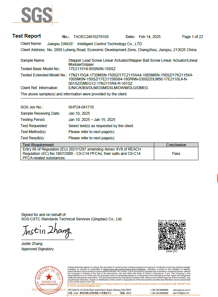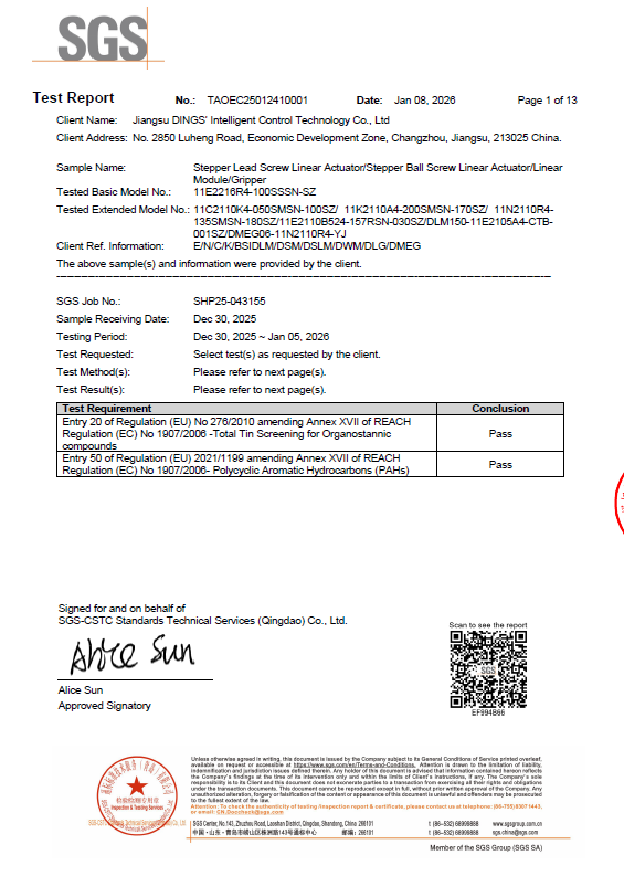 REACH - Annex XVII (PAHs & Organotin) - Stepper Linear Actuator Series